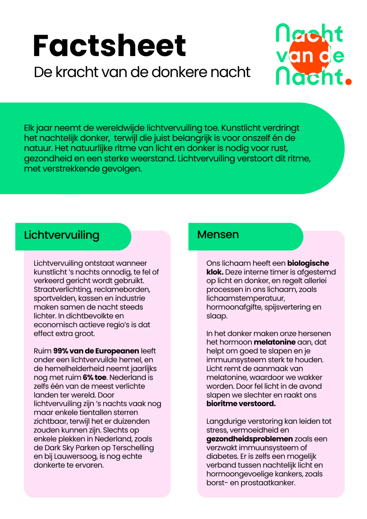 Samen met Jester & Wylde hebben we vier prachtige mini natuurdocumentaires gemaakt over lichtvervuiling. Deze kun je hier op liggend formaat en staand formaat (Instagram Reel) downloaden. Op onze Youtube staan de filmpjes ook voor als je graag een link wilt gebruiken.
